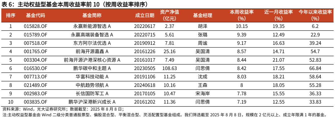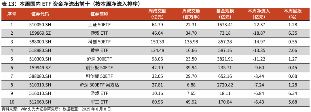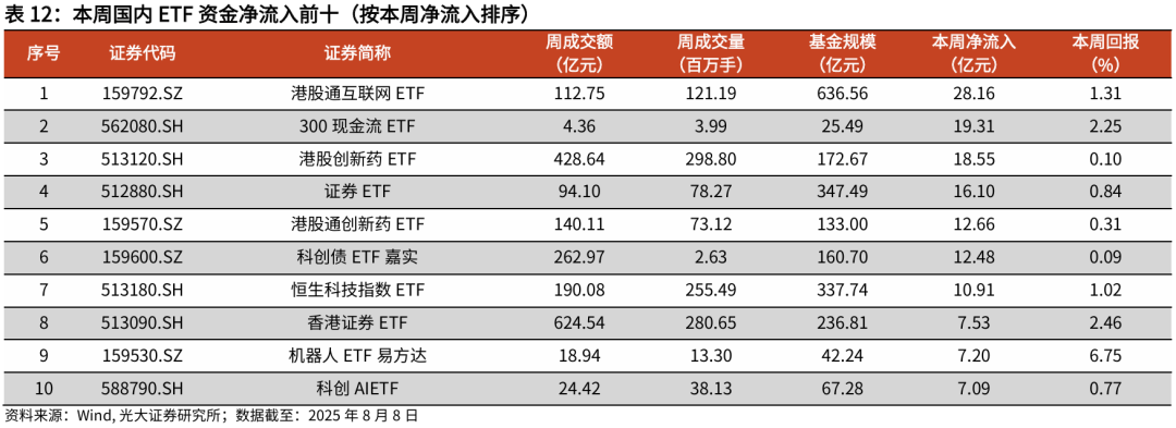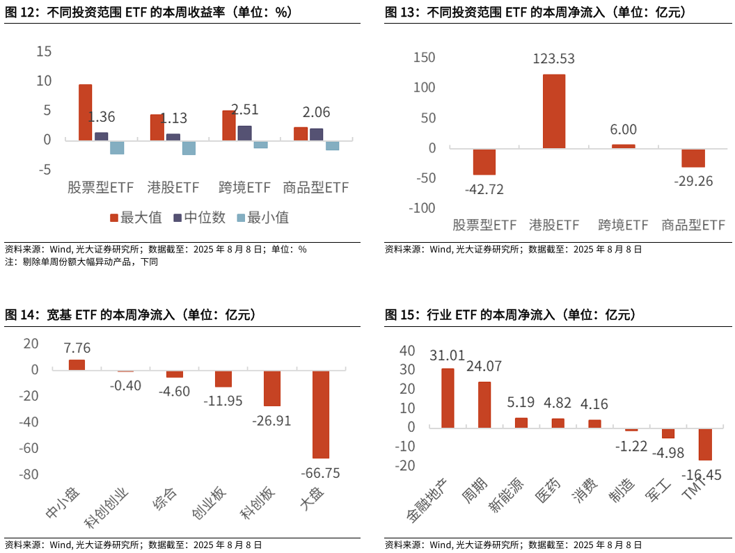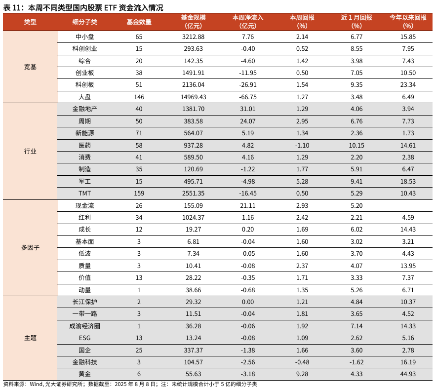 详见2025年8月11日发布的《行业主题基金结构轮动,被动资金加仓金融地产、周期ETF——基金市场与ESG产品周报20250811》